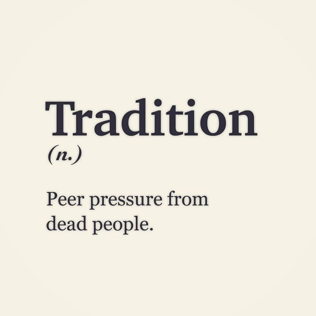 Because here friends, is what tradition does. It instils values, embeds meaning – but also creates a world view and as a consequence, biases towards what is not valuable in that consequence.